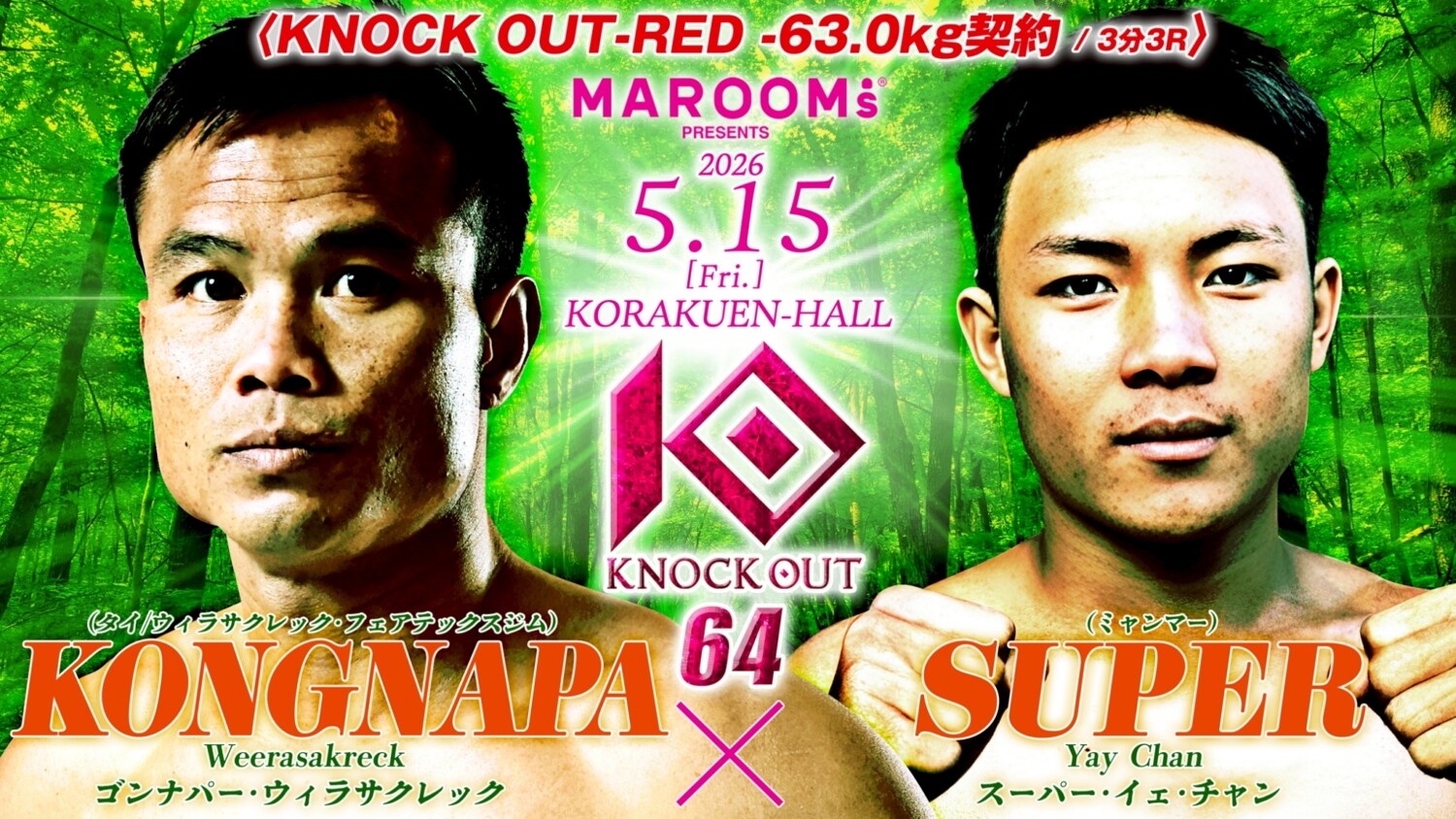 KNOCK OUT.64(5月15日(金)後楽園ホール)の第2弾対戦カード発表記者会見は3月31日、東京都内で行われた。オープンフィンガーグローブ(OFG)着用・肘有りのREDルールでの「KNOCK OUT×ミャンマーラウェイ 3vs3 対抗戦」が行われることになり、KNOCK OUT側からはゴンナパー・ウィラサクレック、重森陽太、渡部蕾が出場する。