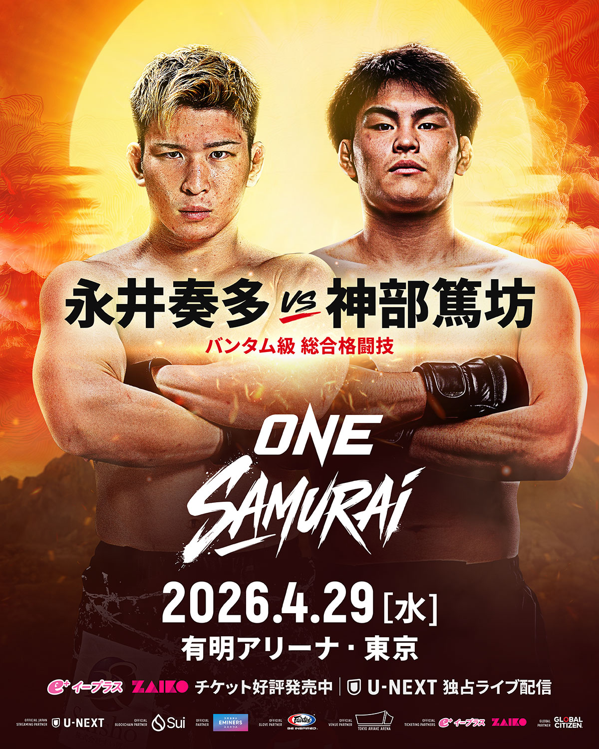 ONE SAMURAI 1(4月29日(水) 東京・有明アリーナ)にMMA 2試合、フライ級 和田竜光 vs. 伊藤盛一郎、バンタム級 永井奏多 vs. 神部篤坊[篤哉]が追加された。4選手の談話がONEから届いている。