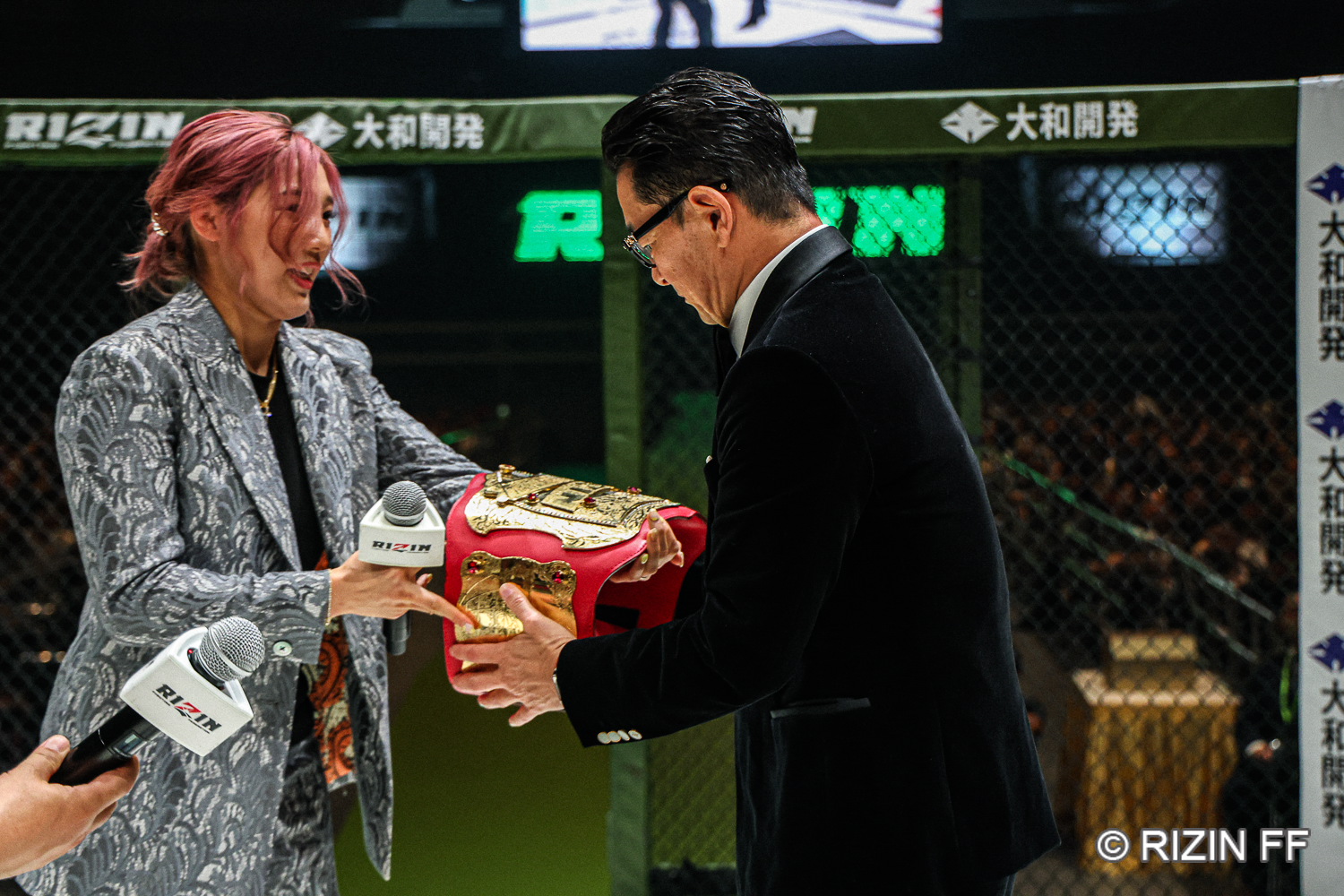 今日はどうもありがとうございました。3年半ぶりの福岡での開催ということで、カードを発表してチケットを販売するまでは「福岡で本当にまたたくさんお客さんに来ていただけるのかな」と、ちょっと不安もありながらのスタートではありました。ただ、思いのほかというか、今日の会場の熱をもってして実感できたんですけど、3年半ぶりにRIZINが来るということで、九州地区のファンの皆さんが待っていてくれたことを実感し、前がかりな熱い熱として感じることができて、非常に光栄でした。そのファンの皆さんのパワーの後押しもあって、イベント全体としては素晴らしい大会になったかなということで、まずもって感謝をしたいと思います。冠スポンサーになっていただきました大和開発様、そして九州朝日放送の森社長をはじめ、九州朝日放送の皆さんにこの地区でのPR活動にご協力いただけたことにも、この場を借りて御礼申し上げたいと思います。ありがとうございました。