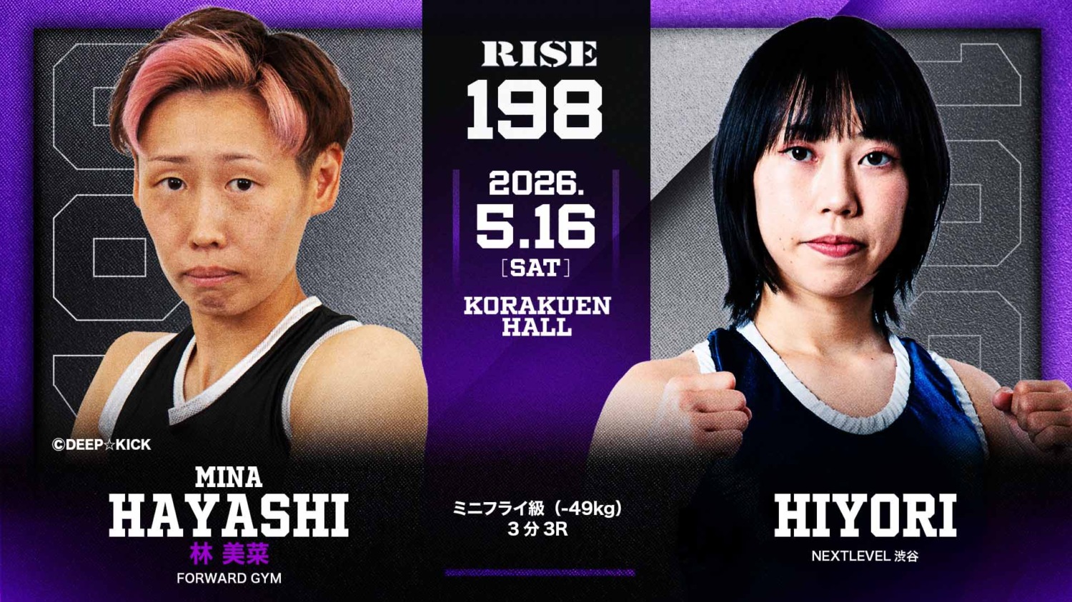 1月のCKC女子-49kgトーナメントで岩永唯伽と愛結菜に勝利して優勝した林美菜がRISEに初参戦し、昨年10月に愛結菜に勝ち3戦3勝のHIYORIと対戦する。