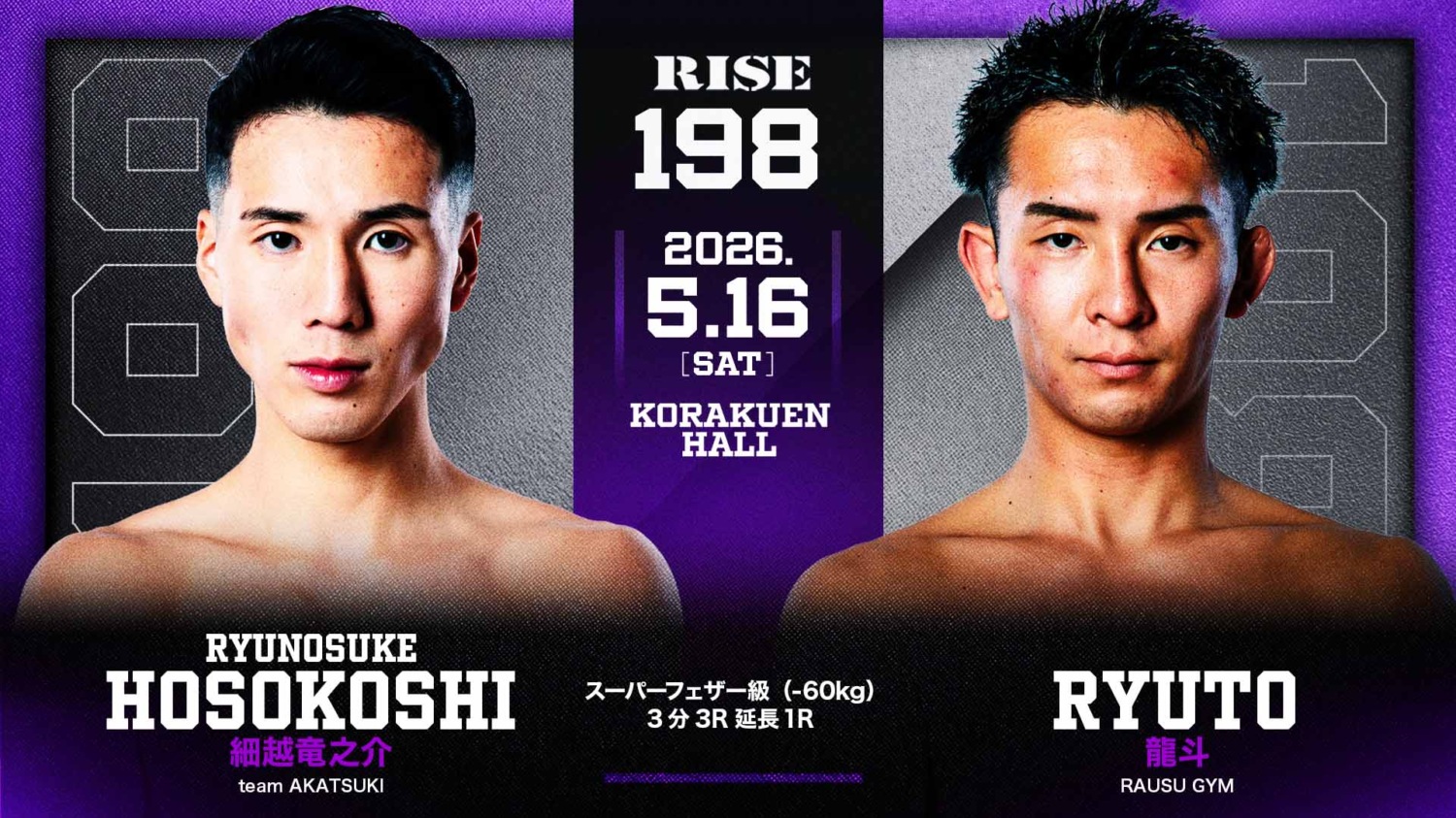 1月の試合で計量失格となった細越竜之介は、引き続きスーパーフェザー級で戦い、昨年11月のRISE初戦で門口佳佑に判定負けした龍斗と対戦する。