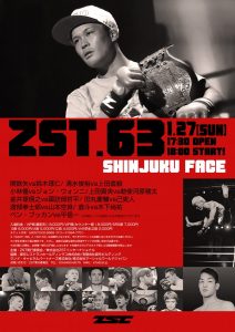 ZST.63(1月27日(日) 新宿フェイス)の試合順と、13時から行われる「SWAT!168」の全カード、試合順が発表された。