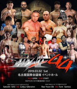 HEAT 44(3月2日(土) 名古屋国際会議場イベントホール)にキックルール・スーパーヘビー級・ジェロム・レ・バンナ(フランス)vs. 楠ジャイロ(ブラジル/元J-NETWORKヘビー級王者)、総合ルール・バンタム級・春日井寒天たけし(志村道場/元元HEAT総合ルール・バンタム級&フライ級王者)vs. 清水俊一(宇留野道場)ほかが追加された。バンナはHEAT初参戦。
