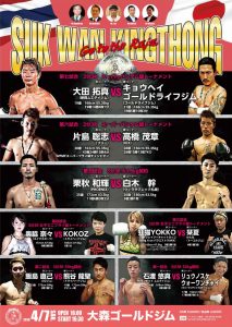 スック・ワンキントーン 4.7 大森ゴールドジム:大田拓真×キョウヘイ・ゴールドライフジム、片島聡志×高橋茂章ほか決定。高橋幸光も出場