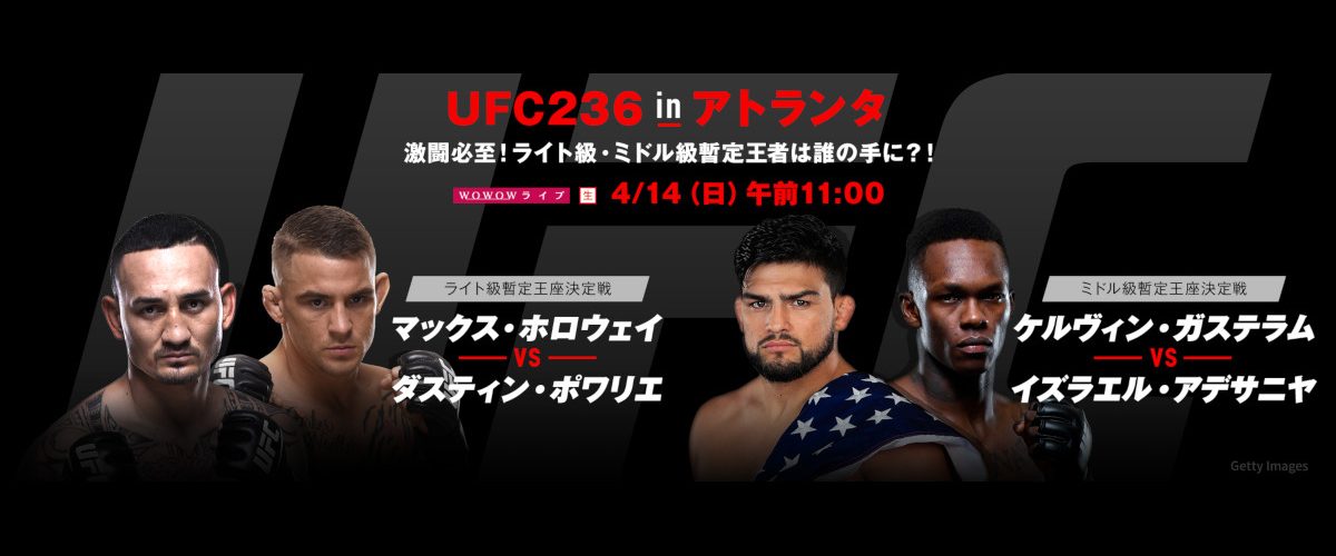 「UFC 236」4/14(日) WOWOWで生中継。髙阪剛がダブル王座戦の見どころ語る「ホロウェイの打撃をもらってもポワリエはリカバリーできるか」「ガステラム×アデサニヤは完成しつつある者と大いなる可能性を秘めた者との闘い」