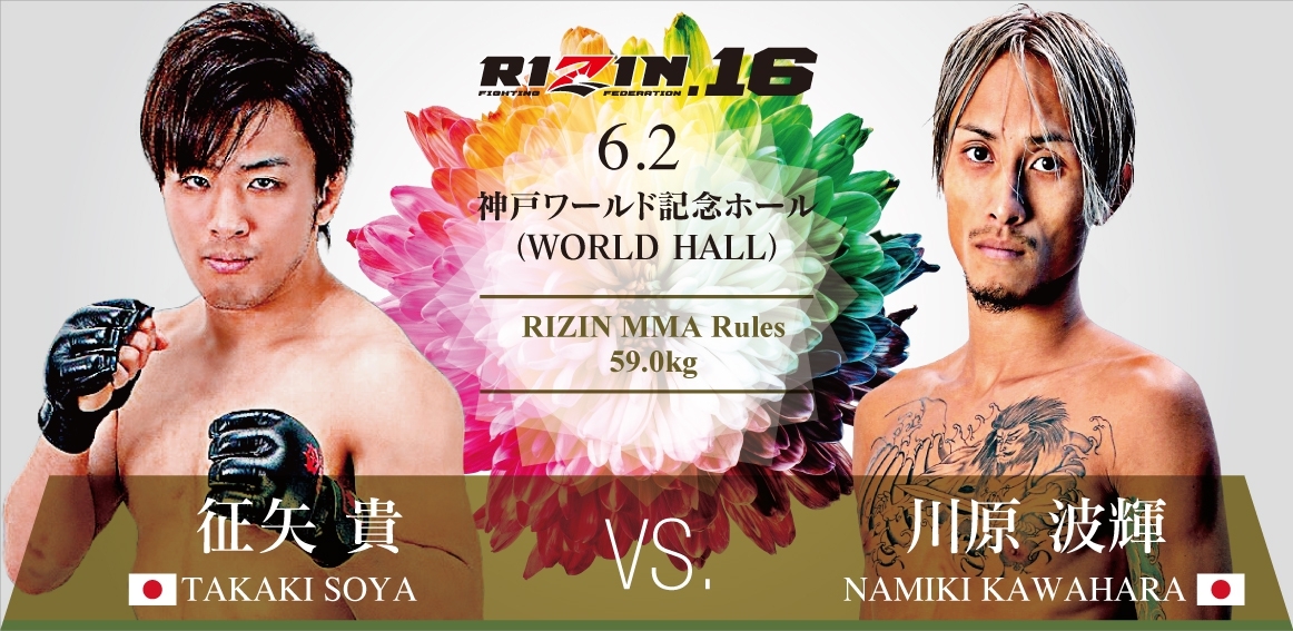 ◆川原波輝「体重差とかもう俺には関係ない。自分が呼ばれた理由はわかってる。いつも通り絶対引けへん。バッチバチのドつき合いするんで征矢選手!生きるか死ぬかの打ち合いしようぜ!打撃にビビってタックルで逃げんなよ!」