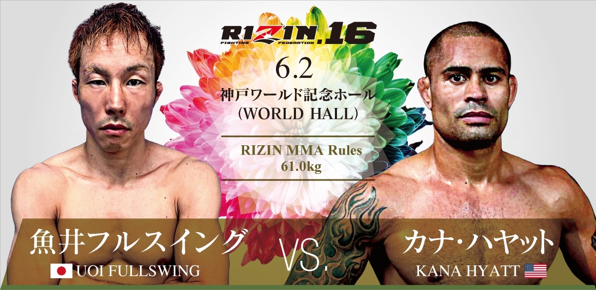 兵庫出身の修斗バンタム級世界3位・魚井フルスイングがRIZINに初参戦。VTJで扇久保博正・中村優作・松根良太に敗れているカナ・ハイアット[ハヤット] と対戦する。修斗の元ランカー・征矢貴[そや・たかき]がRIZINの舞台で2年ぶりにMMAに復帰し、大阪出身でDEEPのストロー級タイトル戦線で活躍する川原波輝と対戦する。RIZIN常連のダロン・クルックシャンクは、昨年大晦日に初来日し 大尊伸光をKOしたトフィック・ムサエフと対戦する。