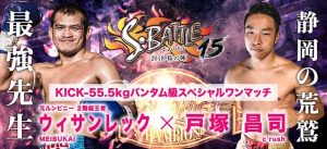 S-BATTLE 4.15 愛知・岡崎市商工会議所大ホール:加藤久輝がキックルールで参戦。ウィサンレック、敦YAMATO、トム・サントスも出場