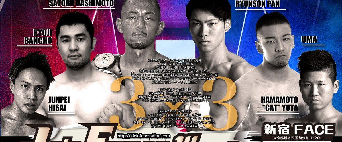 INNOVATION 7.15 新宿フェイス:INNOVATION×REBELS対抗戦 橋本悟×潘隆成、番長兇侍×UMA、久井淳平×浜本“キャット”雄大 直前インタビュー