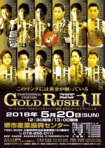 RKSプロモーション主催 マーシャルアーツ日本キックボクシング連盟認定「RKSゴールドラッシュ 2」(5月20日(日) 大阪・堺市産業振興センター)の対戦カードが発表された。メインイベントではMA日本バンタム級王座決定戦・蒼士(RKS GYM)vs. KING 剛(ROYAL KINGS)が行われる。