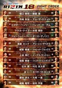 RIZIN.18(8月18日(日) 名古屋ドルフィンズアリーナ)の試合順が発表された。