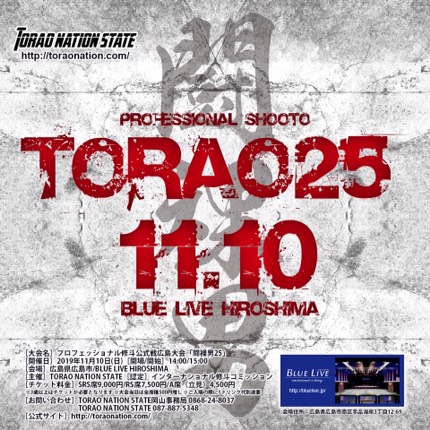 TORAO NATION STATE主催「プロフェッショナル修斗公式戦広島大会 闘裸男25」(11月10日(日)ブルーライブ広島)の概要と決定カードが発表された。