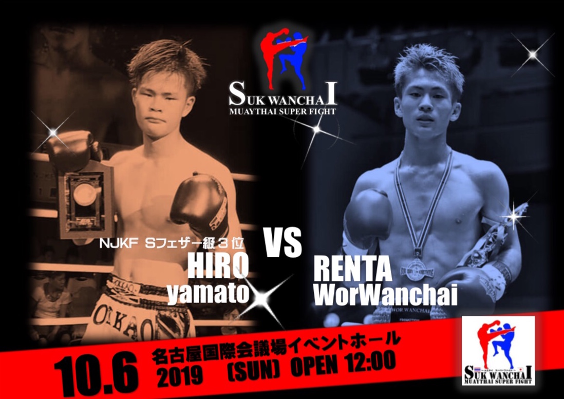 Suk Wanchai MuayThai Super Fight vol.6(10月6日(日)名古屋国際会議場イベントホール)に60kg契約3Rの2カード、HIRO yamato(大和ジム/NJKFスーパーフェザー級3位、元MAXMUAYTHAI GLOBAL FIGHT 62kg王者)vs. レンタ・ウォーワンチャイ(TEAM MUSOU)、作田良典(GET OVER/DBSスーパーフェザー級王者)vs. 桜華(道場 絆/MA日本スーパーフェザー級7位)が追加された。(記事提供:MuayThai Super Fight)