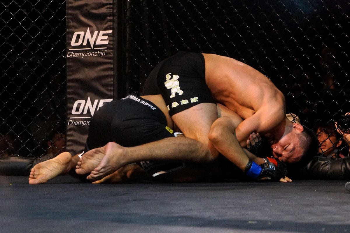 パンクラスと修斗は今年に入ってからONE Championshipと提携し、9月1日のRoad to ONE新木場スタジオコースト大会で両団体の対抗戦6試合が組まれたが、修斗の6戦全勝に終わった。この中で石井はパンクラス側の古間木崇宏に1R裸絞めで一本勝ち(下写真)。今度はパンクラスの大会に乗り込み、上位ランカーの瀧澤との一戦が用意された。10月13日のONE両国大会では両団体の王者対決4試合が組まれ、2勝2敗の五分に。ランカー対決でさらに因縁が続く。