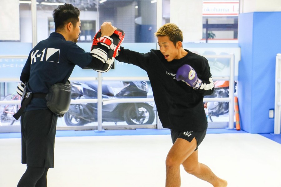 ミット打ちではパンチのコンビネーションと左右のミドル、そして山崎のかけ蹴りを意識してか高い打点の後ろ回し蹴りも披露した瑠久。試合まで1週間を切ったタイミングでの公開練習となったが「過去最高の仕上がりで、無駄のない一日を毎日過ごしてますね」と大一番に向けてベストのコンディションを作り上げてきた。地元・横浜、しかも瑠久がレジェンドだとリスペクトを示してきた山崎との“下剋上マッチ”とあって「決まった時は鳥肌立ちましたね。自分もK-1旗揚げの前、Krushの時から見てきた選手なんで、憧れの選手とやれるって凄くワクワクしましたね」と対戦が決まった時の心境を語る。