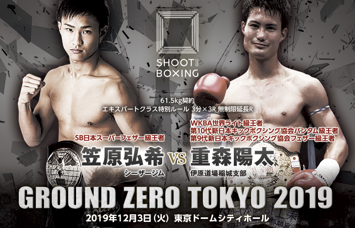 12月3日(火)東京ドームシティホールで開催される2019年ビッグマッチ『GROUND ZERO TOKYO 2019』の第7試合(61.5kg契約)でSB日本スーパーフェザー級王者・笠原弘希(シーザージム)とWKBA世界ライト級王者・重森陽太(伊原道場稲城支部)が対戦する。これまで一度も交流がなかったシュートボクシングと新日本キックボクシング協会が遂に開戦する。SBの若き王者は他団体王者狩りなるか。新日本エースはSBのリングでどのような戦いを見せるか。(記事提供:シュートボクシング協会)