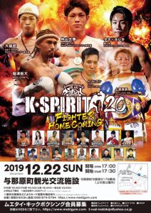 K-SPIRIT 20 FIGHTER HOMECOMING(12月22日(日)沖縄・与那原町観光交流施設)の対戦カードが発表された。東京の大会でも活躍しムエタイの日本王座も獲得した仲山大雅と上原真奈が、地元沖縄での今回の試合で引退する。