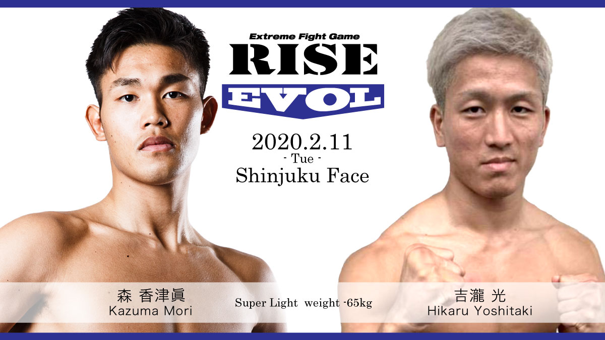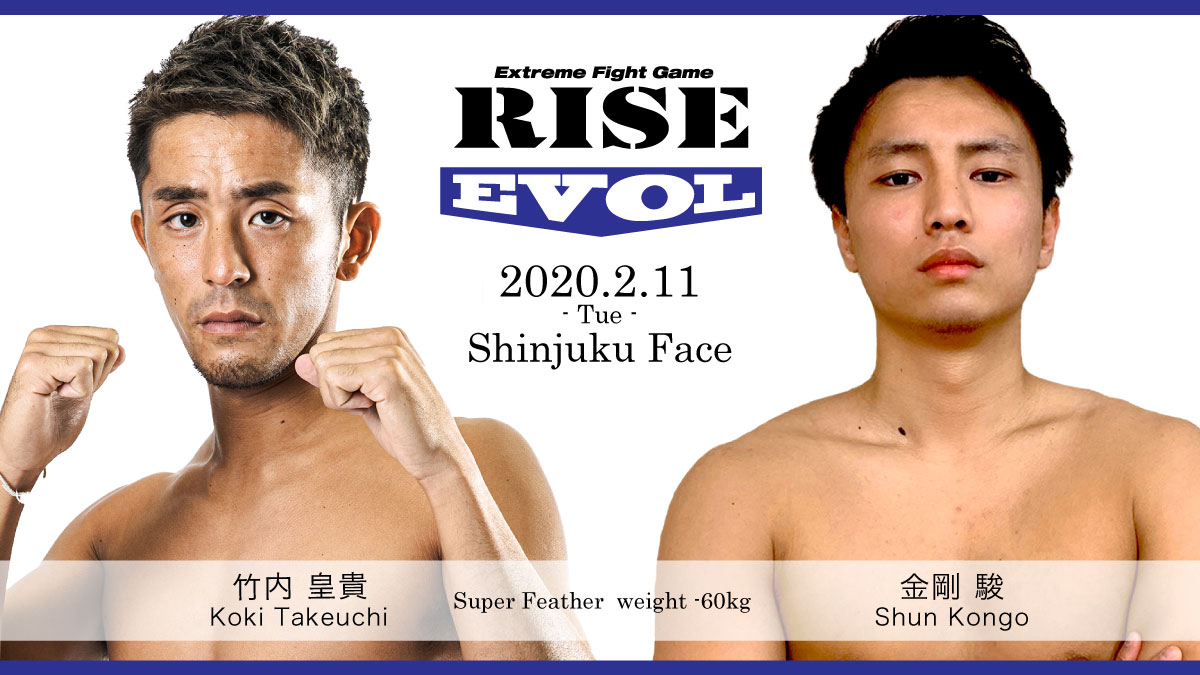 来る2月11日(祝火)新宿FACEで開催される『RISE EVOL.5』の概要と決定カードをお知らせします。当日は昼に『RISE EVOL.5』、夜『GIRLS POWER 2』の開催となります。主な決定カードとして、チームドラゴンの竹内皇貴が昨日ライト級王者となった原口健飛の同門で初参戦の金剛駿と対戦。2018年スーパーライト級新人王の森香津眞もRISE初参戦となる吉瀧光と激突。(記事提供:RISEクリエーション)