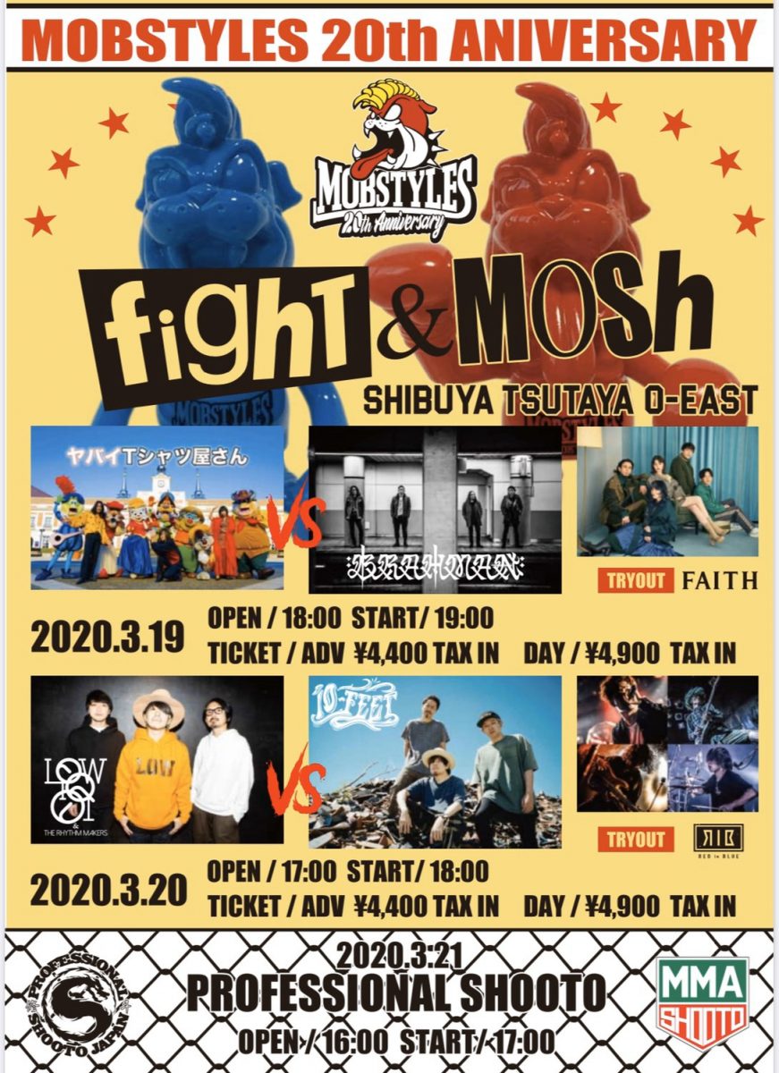 3/21渋谷O-EASTにて20周年を迎えるMOBSTYLESと修斗のコラボイベント「FIGHT&MOSH」開催決定!