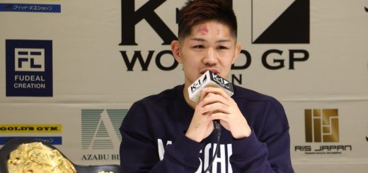 「今回こんな大きい舞台でタイトルマッチをやらせていただいて、本当にありがとうございます。前回はカリミアン選手の怪我で試合が流れてしまったんですけども、自分達は格闘家なので怪我は付き物ですし、仕方がないと思います。次こそは絶対万全の体調で来てくれると思いますし、自分も当日史上最強の愛鷹亮になって、必ずベルトを奪取します。応援よろしくお願いします」