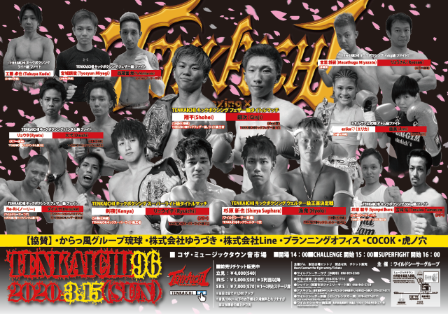 TENKAICHI 96(3月15日(日) 沖縄・ミュージックタウン音市場)の対戦カードが発表された。