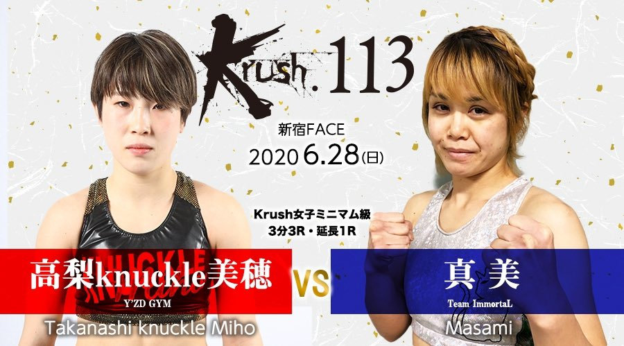 Krush 6.21 後楽園を6.28 新宿フェイスにスライド。高梨knuckle美穂、女子アトム級王座返上しMIOと同じミニマム級で初戦