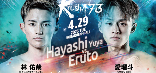 さらに、Krushフェザー級の桝本翔也vs椿原龍矢、森坂陸vs勝輝の2カードも「Krush.114」にスライド。そして、当初同大会に出場予定で、調整中とされていた里見柚己、瓦田脩二、中野滉太、瑠久、西林翔平の5選手の出場大会についても、後日発表される。