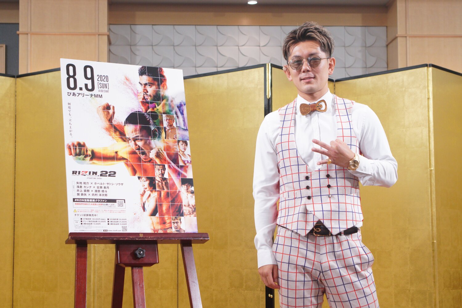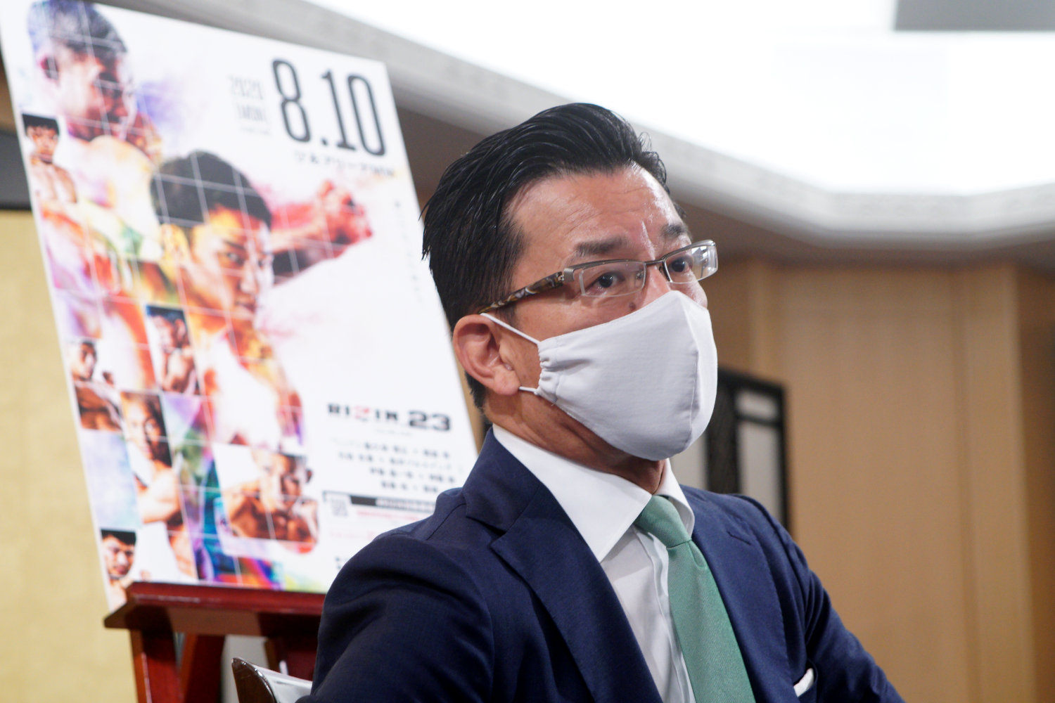 皇治のRIZIN初戦について榊原氏は「8月16日の(皇治の地元の大阪の)大阪城ホール大会でメインを張ることになっていましたが、大阪大会ができなくなった」ことから「8月9日のメインかセミかに出て欲しいです」と公開オファー。「天心に9日の大会にオファーしていましたが、拳を痛めていまして(※天心のツイートでは右手首)、昨日MRIの診断結果が出て、全治6週間とわかり、参戦を断念することになりました。ピンチのRIZINのために、ここは頭を下げて、男を見せて欲しいなと思います」と皇治に出場を依頼した。