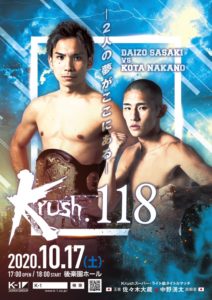 Krush 10.17 後楽園ホール:佐々木大蔵、PODの有望株・中野滉太と2度目の防衛戦。元暴走族・鈴木勇人×国家公務員・松本篤人も決定