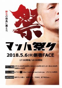 桜井“マッハ”速人が主催する「マッハ祭り2018」(5月6日(日) 新宿フェイス)の対戦カードが発表された。RIZIN福岡大会と同日のこの大会では、2005年大晦日のPRIDE男祭りのライト級GP決勝で戦った木口道場の兄弟弟子・桜井“マッハ”速人と五味隆典がエキシビションマッチを行う。このエキシは、頸髄完全損傷の闘病生活を送る高山善廣の応援チャリティマッチとして行われる。