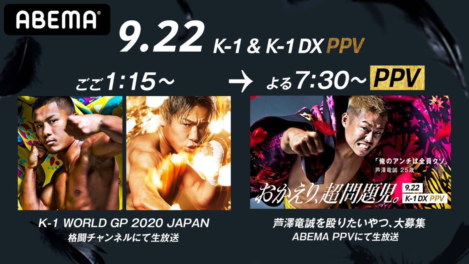 ◆「ABEMA PPV ONLINE LIVE」にて9月22日配信、特別マッチ『芦澤竜誠を殴りたいやつ、大募集』