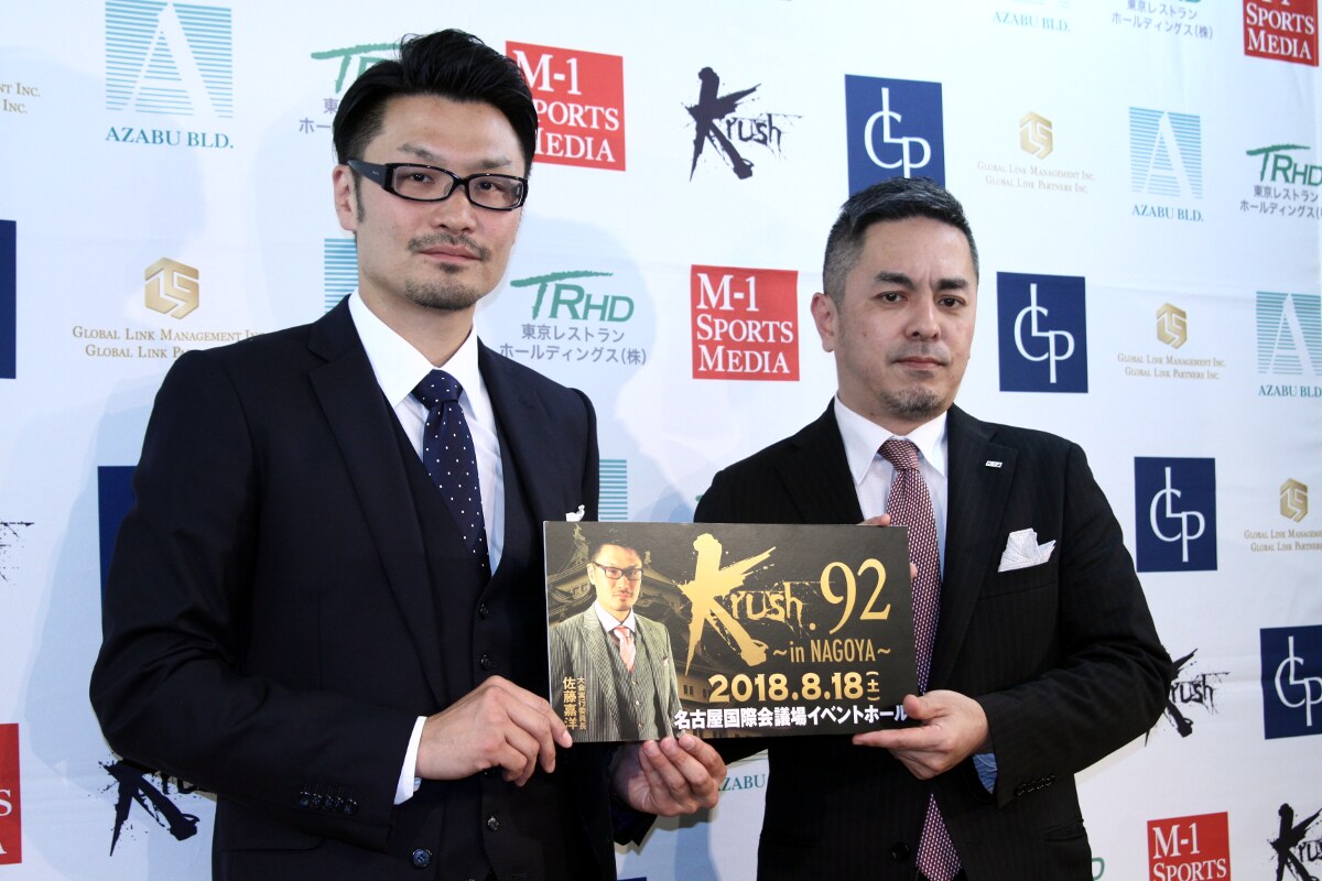 Krush.92 ~in NAGOYA~(8月18日(土) 名古屋国際会議場イベントホール)の概要発表会見が4月10日、都内で行われた。毎年8月恒例のKrush名古屋大会に、昨年大会に続き、愛知出身の野杁正明と大和哲也、三重出身のKANAの3人の揃い踏みが決定。カードは後日発表される。
