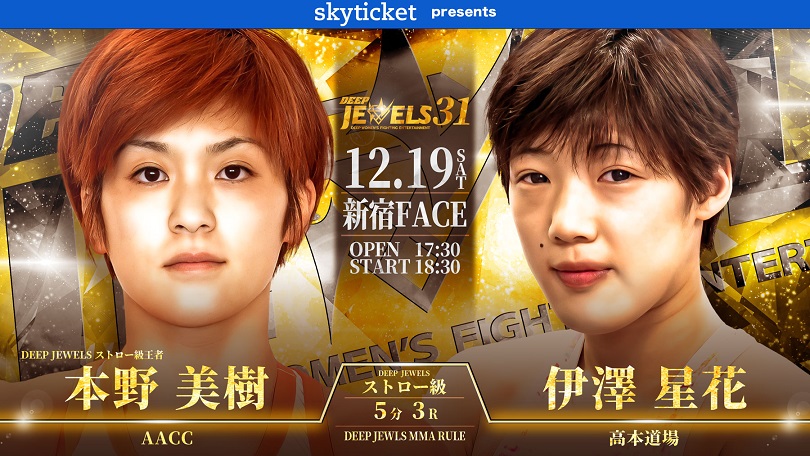 7月のDEEP JEWELS新宿大会で赤林檎とのDEEP JEWELSストロー級暫定王者決定戦で1R TKO勝ちした本野美樹(AACC)も出場。10月のニューピア大会でのプロデビュー戦で勝利したばかりの伊澤星花(高本道場)と対戦することになった。