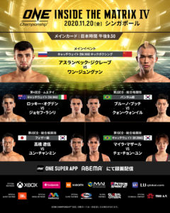 11月20日(金)21:30~ ONE Championship: INSIDE THE MATRIX IV