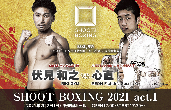 2月7日(日)東京・後楽園ホールにて開催されるシリーズ開幕戦『SHOOT BOXING 2021 act.1』の追加対戦カードが発表された。元SB日本スーパーバンタム級王者でSB日本バンタム級1位の伏見和之(RIKI GYM)が参戦、心直(REON Fighting Sports Gym)と対戦する。