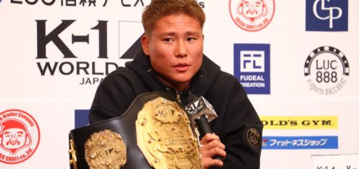 (ベルトを見ながら気持ちを盛り上げている?)元々、福岡から東京に上京して、チャンピオンになりたくて出てきましたけど、前回試合に負けて福岡に帰ることになって。やっぱり格闘技が好き、選手としてチャンピオンになりたい。それを証明するにはやっぱりチャンピオンベルトなんでね。それが世界最高峰のK-1のチャンピオンベルトなら、なおさら燃えるというか、絶対獲ってやろうと思いますね。