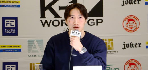 (どういう気持ちでK-1に乗り込んできた?)自分も1年ぶりの試合で、1年間、遊んでばっかだったんで、今年は格闘技に集中しようと思って、大阪のほうにも来たんで、その成果を見せてリングに上がれたらなと思います。(K-1のフェザー級の印象は?)軍司泰斗とかもいて、まあ、軍司は仲がいいんでやりたくないんですけど、チャンピオンの江川優生選手とは普通にやりたいですね。その日に(江川の)タイトルマッチあるんで、そこはちゃんと勝ってもらってタイトルに近づきたいなと思っています」