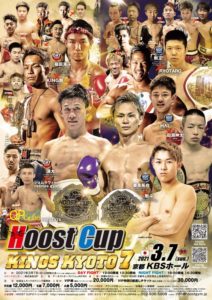 HOOST CUP KINGS KYOTO 7(3月7日(日)京都KBSホール)のNIGHT FIGHTのメインイベント、セミファイナル2試合の6選手のコメントが、主催者から届いた。試合紹介映像も公開されている。