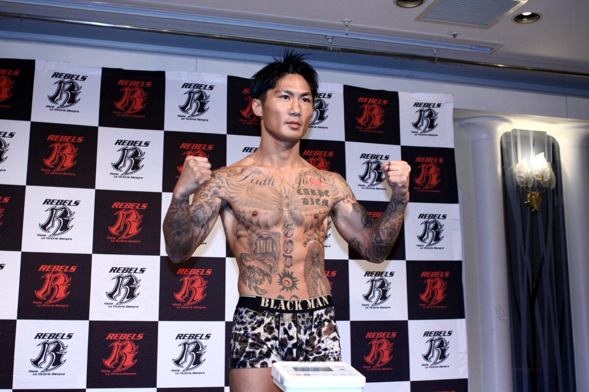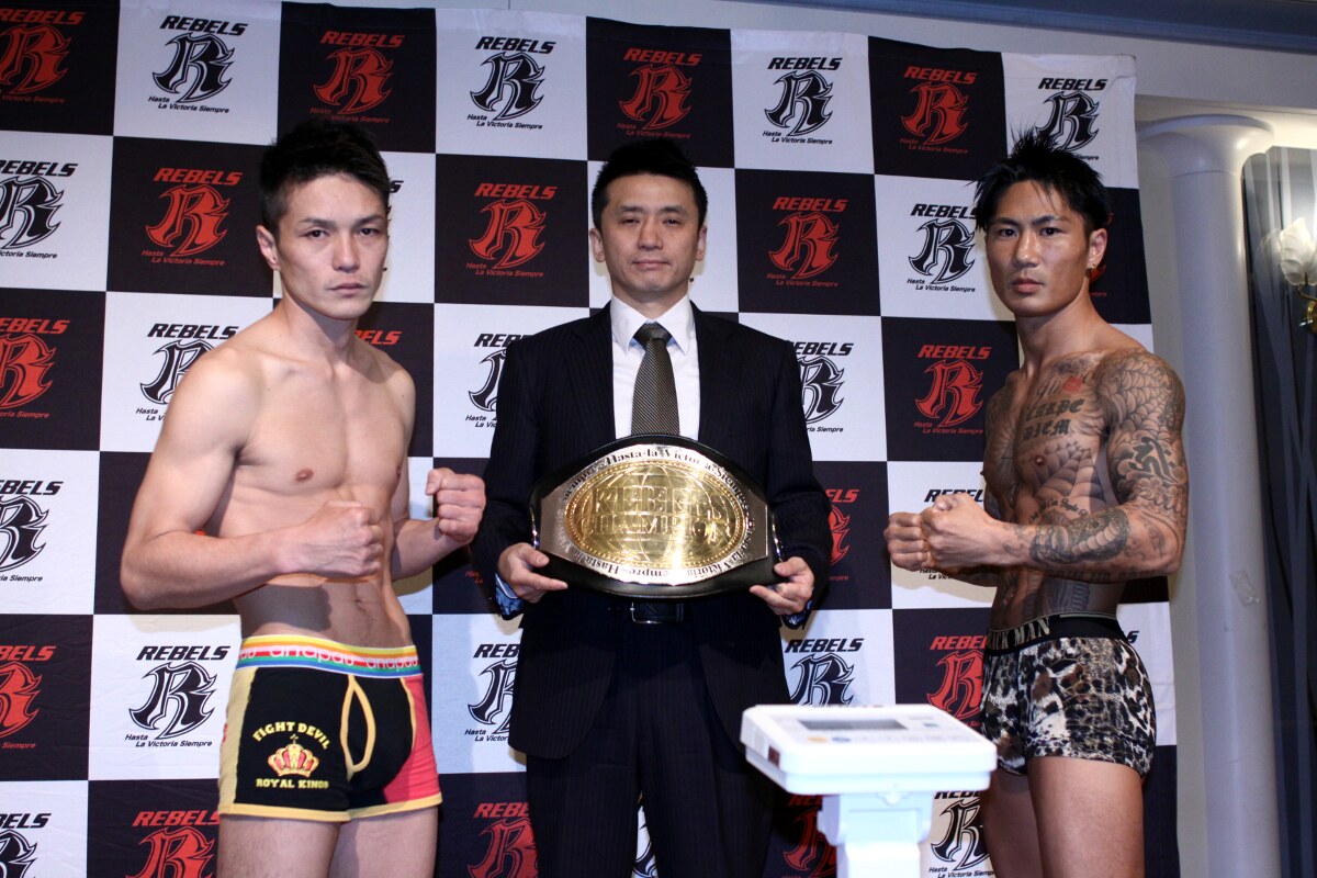 REBELS 4.27 後楽園ホール:計量クリアの小笠原瑛作、ISKAに続きWPMFの世界ベルトを「必ず巻きたい」
