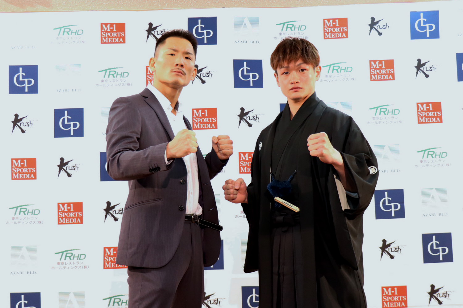 一方の南雲はいつものミャンマーの民族衣装ではなく、この日は着物姿で登場。「一生懸命頑張って、皆様に成長した姿をお見せします」と挨拶すると、堀井に関しては「1回目に戦った時よりもとても強くなっていたなっていうか、本当に強くなっていました」とコメントした。また、「K-1 JAPAN GROUPに参戦してから5回だか4回だかKrushされているんですけど、そのうちの1回は堀井選手の“モノ”をKrushしてしまっていますし、だからKrushされないことと変な方向にKrushしないようにということで頑張ります」と同じ轍は踏まないことを約束。「自分が今日まで格闘技を続けることできたのは応援してくださっている皆様だったり、先生方のおかげなので、僕が勝つことによって皆様の勝利でもあると思っているので、感謝の気持ちを拳に乗せて頑張ります」と、自分を支えてくれる人たちへの感謝の証としてベルトを獲ることを誓った。