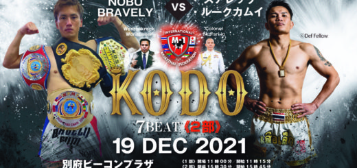 BRAVELY GYM主催「第6回KODO -魂動-」(8月1日(日)大分・さいき城山桜ホール)の対戦カードが発表された、既報通り今大会からウィラサクレック・ウォンパサー氏(ウィラサクレック・ムエタイジム会長)が日本支局長を務めるムエタイの新組織「M-1 JAPAN」の試合が組まれるようになり、バンタム級とスーパーウェルター級とヘビー級で王座決定戦が組まれた。