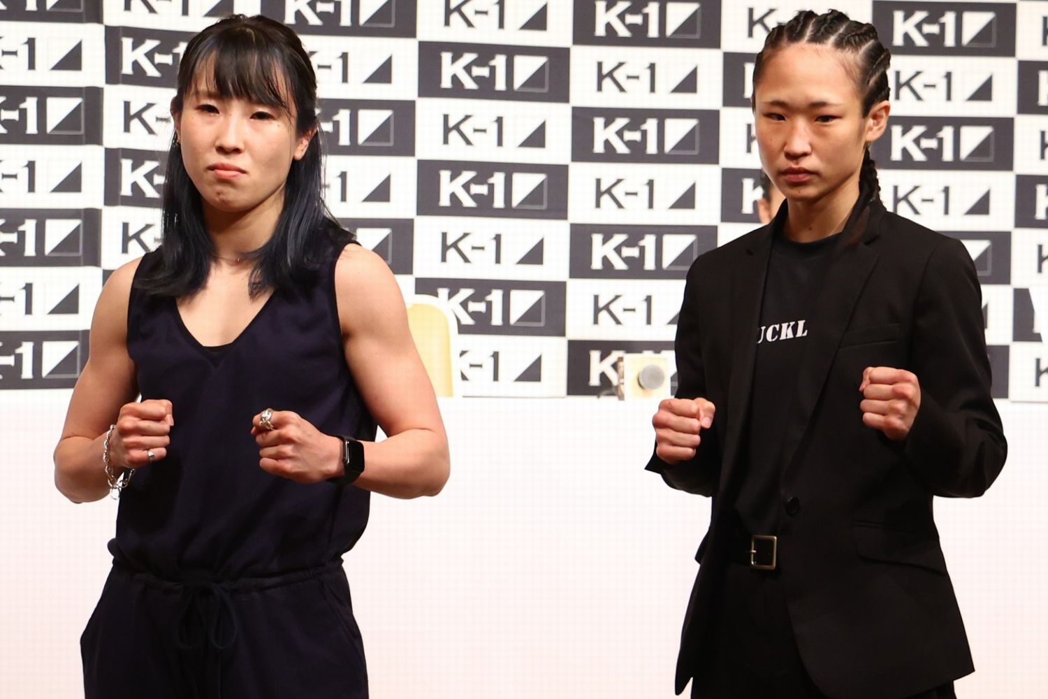 第3試合ではプロで無敗街道を突き進むも、共に3月の「K’FESTA.4」で初黒星を喫した山田真子とNOZOMIが対峙。プロボクシング時代も含め、初めて敗北を知った山田は「見えなかった部分も見えて、すごい経験になった。その経験を活かして、明日しっかり結果を残せるように」と神妙にコメント。対するNOZOMIは「前回はカッコ悪い姿を見せてしまったので、明日しっかり勝ってカッコいいところを見せたい」と、こちらも前戦を踏まえて期する思いを伺わせた。