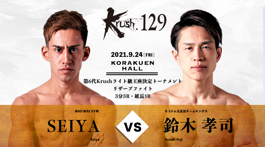Krush 9.24 後楽園ホール:ライト級王座決定TリザーブファイトはSEIYA×鈴木孝司に。MAキック王者の宮崎勇樹が初参戦