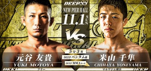 DEEP 6.30 ディファ有明:元ウェルター級王者・悠太が復帰戦。5戦全勝の武田光司、宮崎直人と対戦。昨年の全日本学生レスリング準優勝・神田航也がMMAデビュー