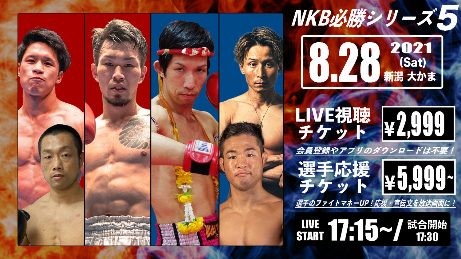 チケットは完売。大会の模様はKIPSを通じて有料生配信される(視聴料3,279円~)。解説はNKBマッチメイカーの竹村哲氏、NKBライト級の辻健太郎、6月のNKBで引退試合を行ったREBELS 2階級制覇王者の北川“ハチマキ”和裕氏の3人。