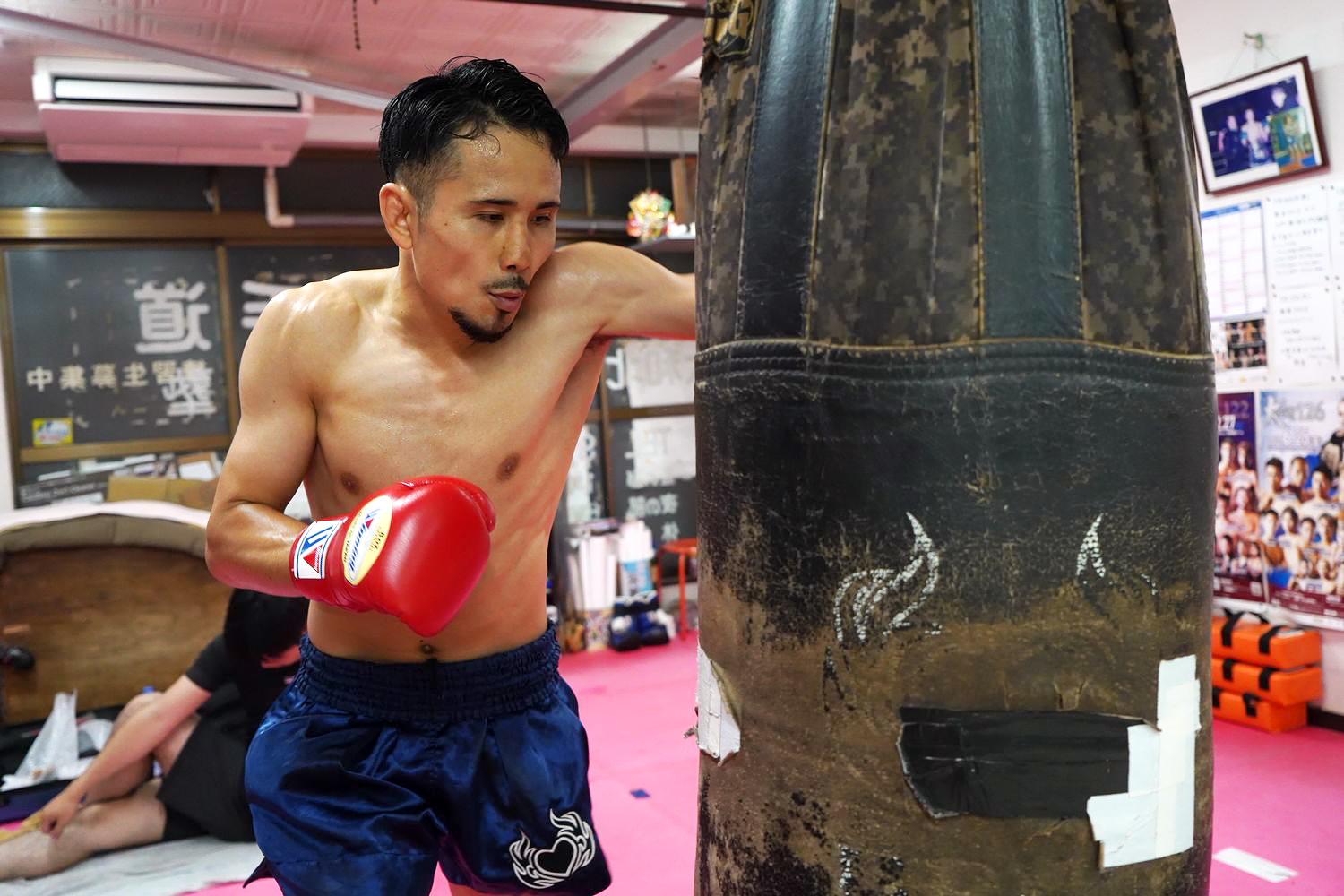 京都・WIZARDキックボクシングジムにて、9月20日(月・祝)神奈川・横浜アリーナで開催される「K-1 WORLD GP 2021 JAPAN~よこはまつり~」の[スーパーファイト/K-1フェザー級/3分3R・延長1R]で佑典と対戦する斗麗が公開練習を行なった。