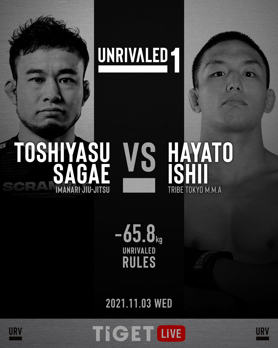 UNRIVALED 11.3 TIGETで生中継:新グラップリング大会に小谷直之×樋口翔己、山北渓人×吉永力、寒河江寿泰×石井逸人、野村優眞×宮川太暉を追加。全試合揃う