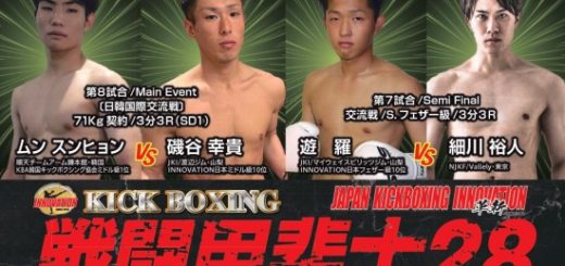INNOVATION 12.5 品川インターシティホール:大谷翔司、ライト級王座初防衛戦で紀州のマルちゃんと再戦。翔貴×新田宗一郎でスーパーフェザー級王座挑戦者決定戦