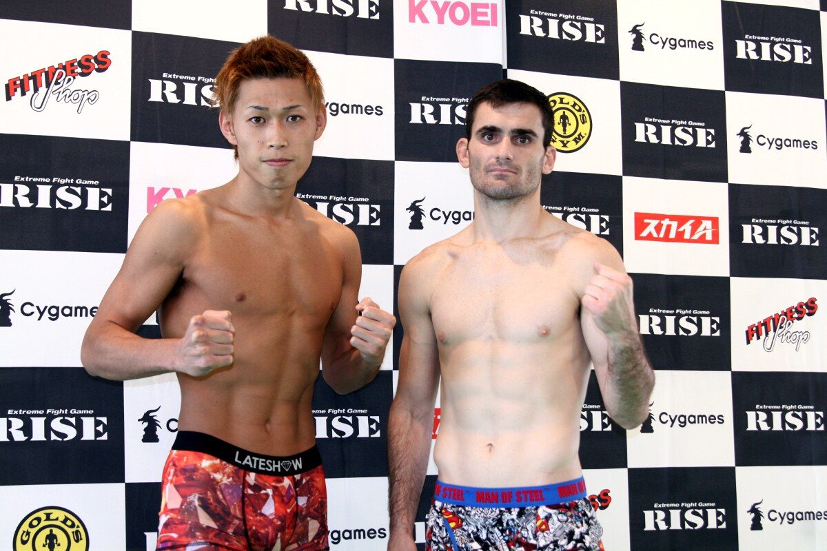 PANCRASE 298(8月5日(日) 新木場スタジオコースト)に3試合が追加された。フェザー級9位の牛久絢太郎(上写真)は約2年ぶり出場の元ランカー、ユータ&ロックと対戦。同級の内村洋次郎と対戦するヴィトー・トファネリ(ブラジル/チーム・ブラジリアン・タイ)はパンクラス初参戦。MMA 23戦16勝(8KO/4一本)7敗の32歳(シャードッグのデータ)。06年からMMAの試合をし、昨年はHEAT、ベラトールに出場。空手の闘英館の世界大会優勝実績があり、キックルールでもホーストカップに出場し、明日5月25日のRISEではメインでRISEライト級(-63kg)5位の直樹と対戦する。(下写真は24日のRISEの計量時のトファネリ(右))