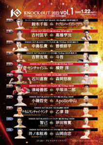 日時 2022年1月22日(土) 開場・17:00 プレリミナリーファイト開始・17:30 本戦開始・18:00
